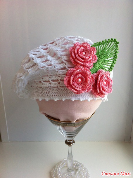 Хочу поделиться замечательной находкой - берет лесенкой, который не раз здесь встречался, но без подробнейшего описания. По данному описанию может связать начинающая вязальщица - все очень просто, и я даже рекомендую. Я связала для своей дочери, ниточки самого беретика анна twist от сеам, розы miss, листик пехорка ажурная, крючок 1,5 кловер. Размер ог 47, размер диаметра донышка 23,5 см. (Девочки можете поделиться опытом вязания платьев по этой схеме с таким же расширением, как оно выглядит? Красиво? Хочу связать себе и дочке платья.)