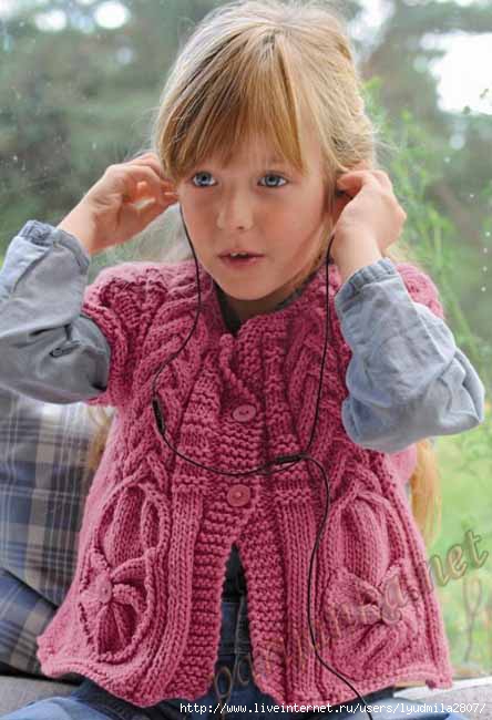 Куртка с короткими рукавами для девочки спицами